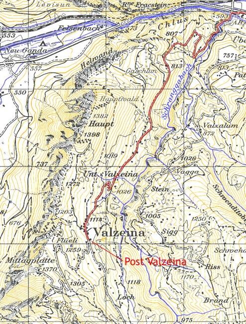 Nach der Klus und vor dem Dorf Grüsch/Danusa gibt es eine Abzweigung Valzeina/Seewis.